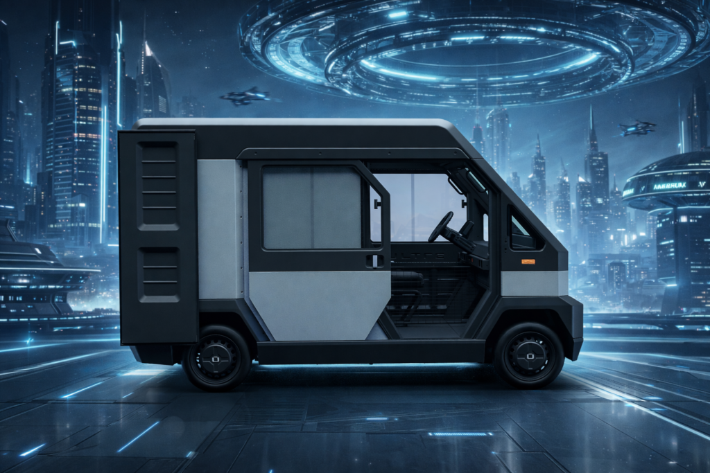 The Ultre 4 Cargo outclasses rivals with its lowest total cost of ownership (TCO) and record-breaking performance, as well as available square footage in a micro vehicle. Patented FiDU technology eliminates expensive dies, enabling low-cost customization and production at local microfactories. A key advantage is the unique volume-to-size ratio: 4 m³ cargo with a turning radius of just 4.2 m. The vehicle offers the strength of steel, access to parcels from both sides, and an “autonomous-ready” design. It is the only solution on the market that combines the light weight of a micro-vehicle with the safety and functionality of a full-size provider.
